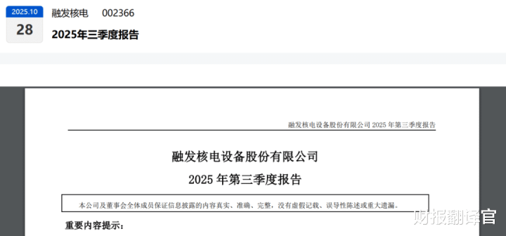 侦探的第一个发现很直接:融发核电前三季度亏损7329.30万元。